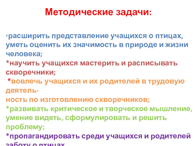 Слайд 6 Методические задачи: