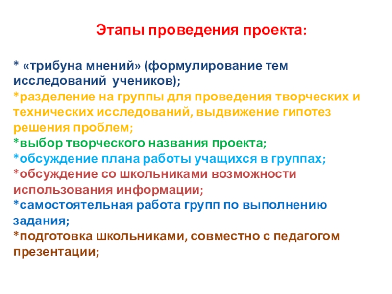 Этапы проведения проекта: