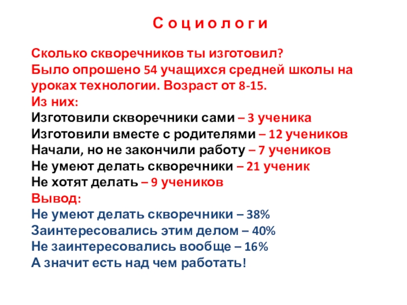 Не умеют делать скворечники – 38%