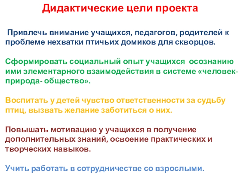 Слайд 5 Дидактические цели проекта