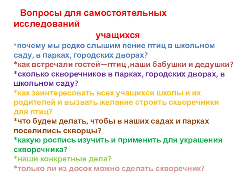 Слайд 7 Вопросы для самостоятельных исследований