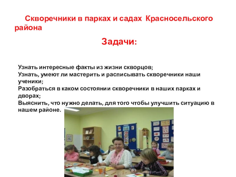Слайд 13 Скворечники в парках и садах Красносельского района
