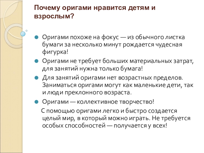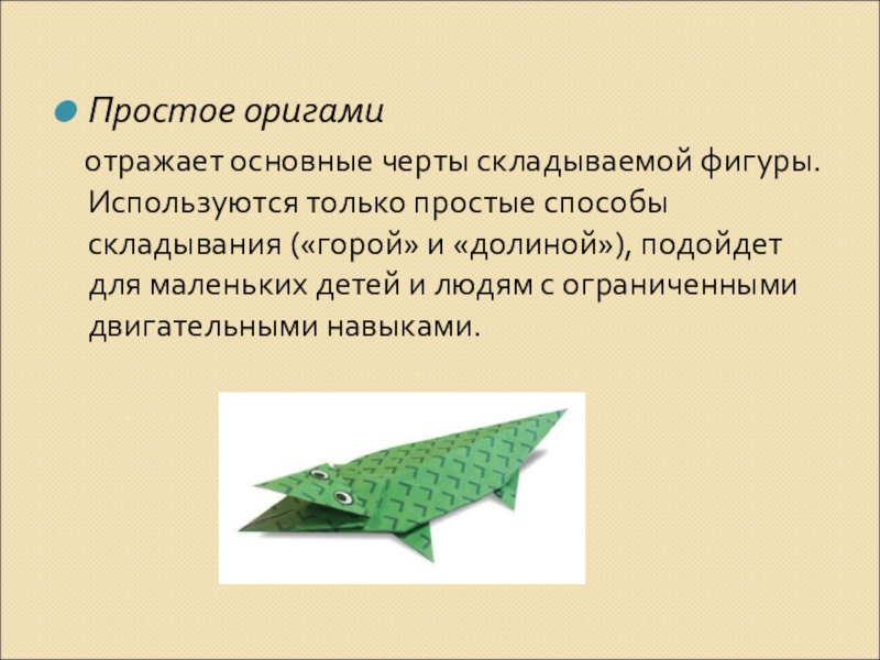 Слайд 3Оригами –японское искусство складывания бумаги. Оно является не только увлекательным способом
