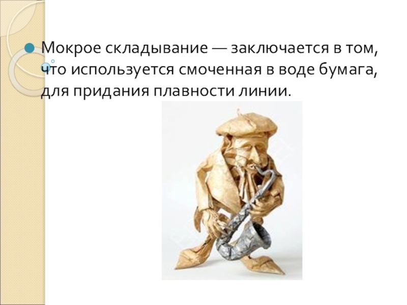 Мокрое складывание — заключается в том, что используется смоченная в воде бумага,