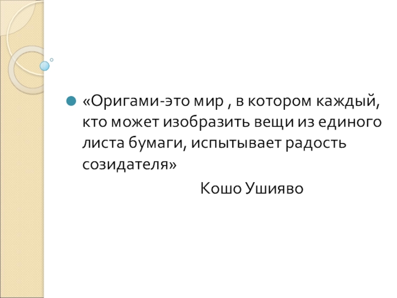 «Оригами-это мир , в котором каждый, кто может изобразить вещи из