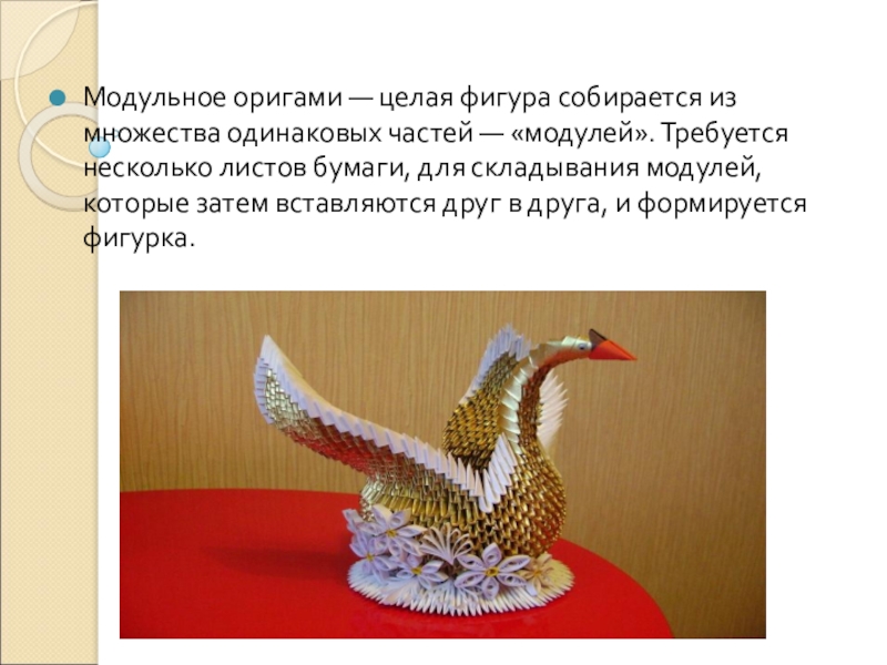 Модульное оригами — целая фигура собирается из множества одинаковых частей — «модулей». Требуется