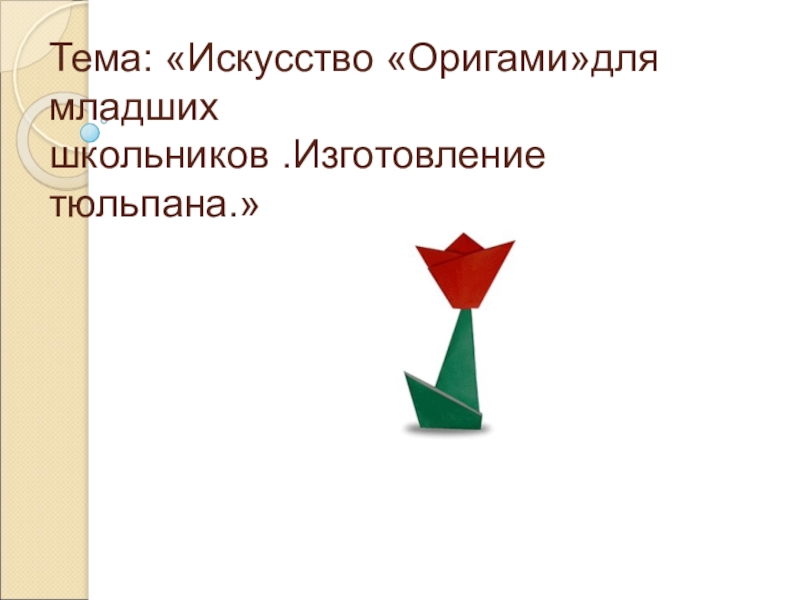 Слайд 2Тема: «Искусство «Оригами»для младших
