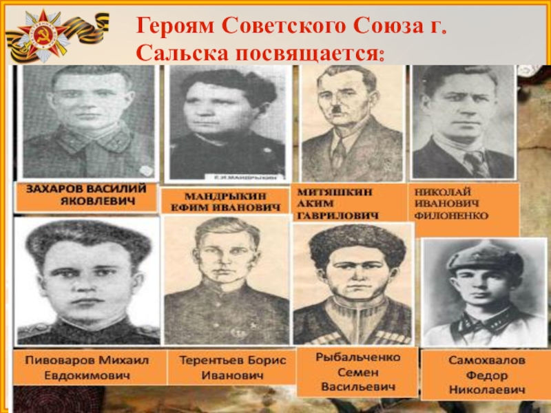 Слайд 25Героям Советского Союза г.Сальска посвящается: