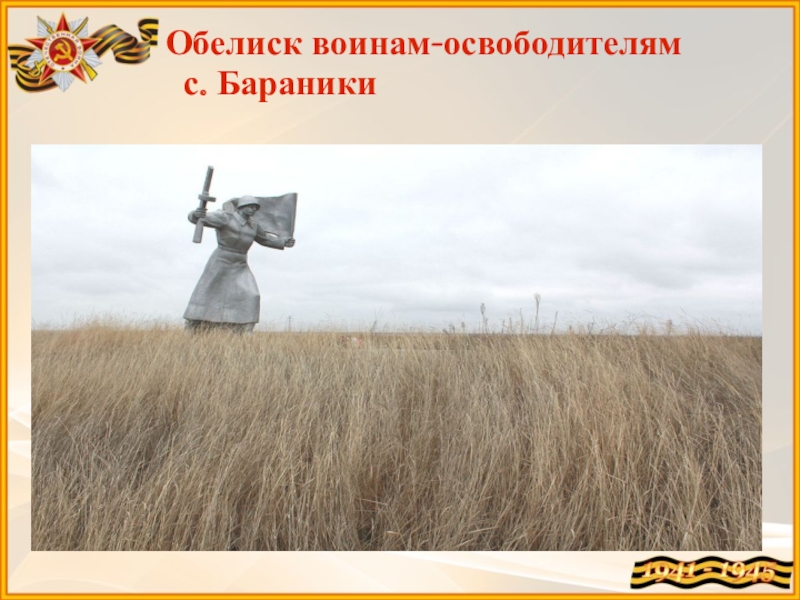 Слайд 27Обелиск «Бессмертие» на берегу реки Маныч