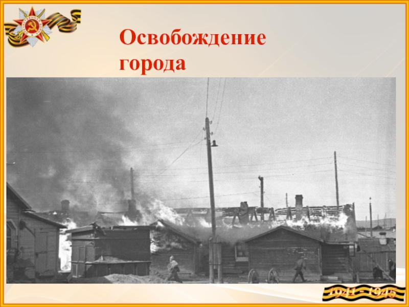 Слайд 5За полгода оккупации района иноземными захватчиками было разрушено и сожжено 428
