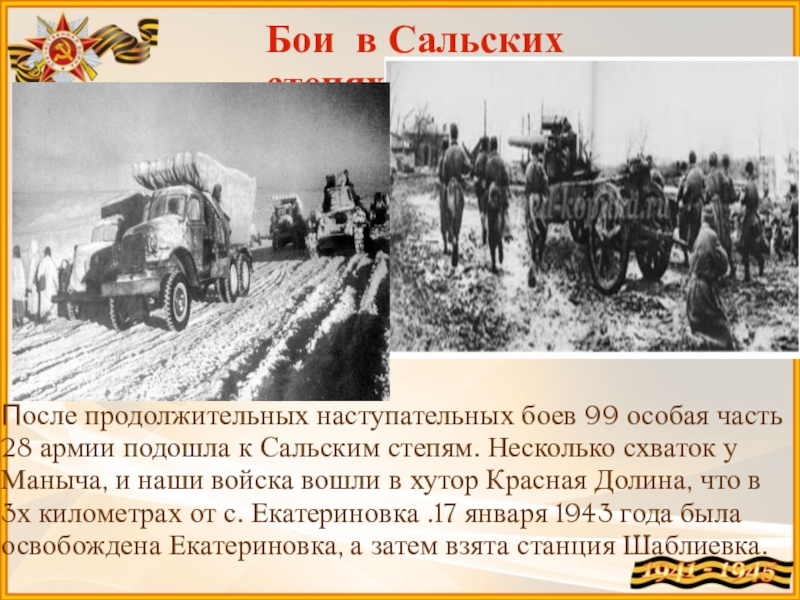 Слайд 14Бои за освобождение Сальского района развернулись с 15 января. Особенно ожесточенными