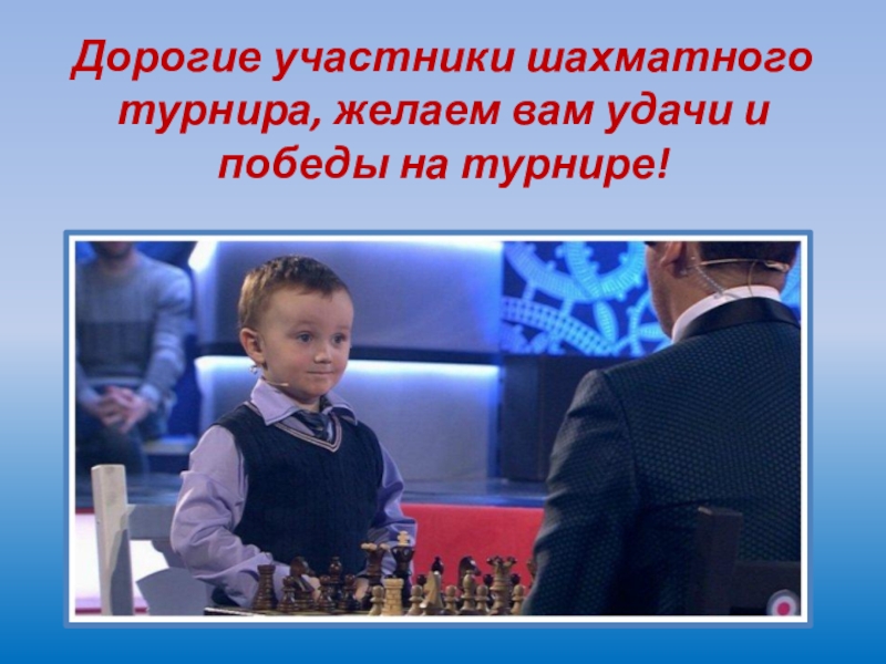 Слайд 20 Дорогие участники шахматного турнира, желаем вам удачи и победы на турнире!