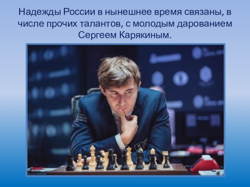 Надежды России в нынешнее время связаны, в числе прочих талантов, с молодым дарованием Сергеем Карякиным.