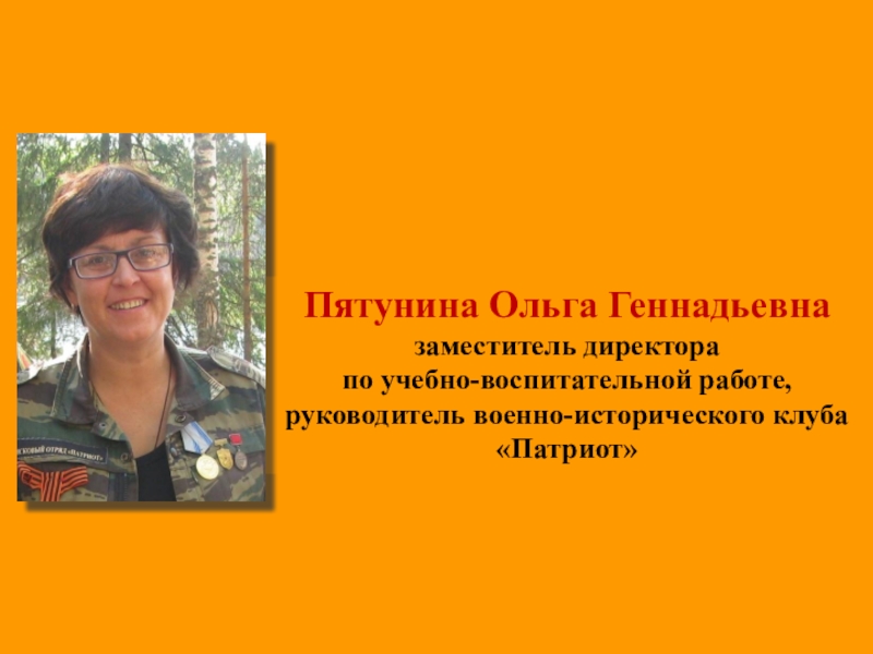 Пятунина Ольга Геннадьевназаместитель директора по учебно-воспитательной работе,руководитель военно-исторического клуба «Патриот»