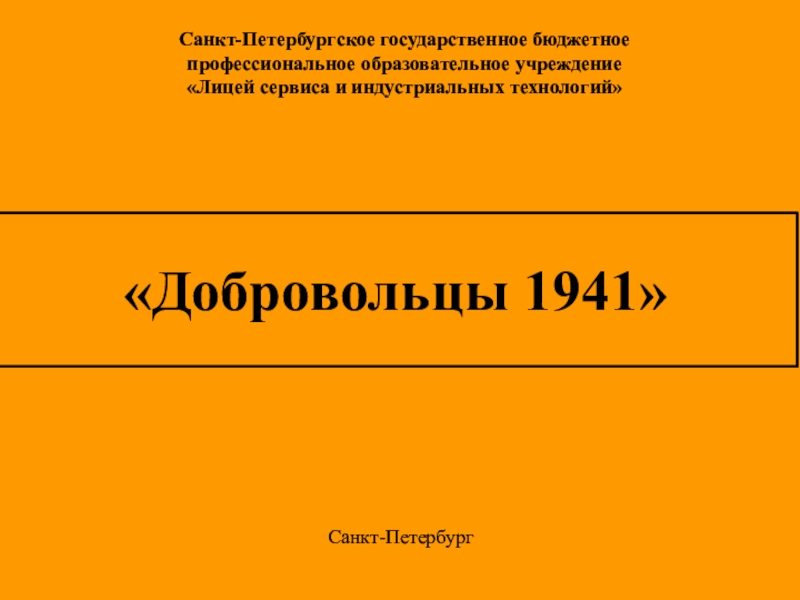 «Добровольцы 1941»Санкт-Петербургское государственное бюджетное профессиональное образовательное учреждение«Лицей сервиса и индустриальных технологий»Санкт-Петербург