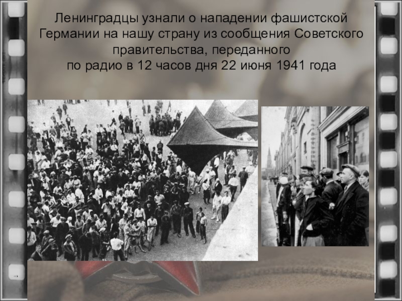 Слайд 8Ленинградцы узнали о нападении фашистской Германии на нашу страну из сообщения