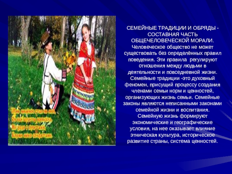 СЕМЕЙНЫЕ ТРАДИЦИИ И ОБРЯДЫ - СОСТАВНАЯ ЧАСТЬ ОБЩЕЧЕЛОВЕЧЕСКОЙ МОРАЛИ.