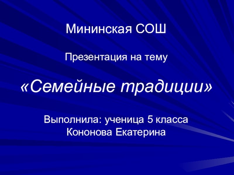 Семейные традиции -это духовный феномен, присущий процессу создания членами семьи норм и ценностей, организующих жизнь семьи. Семейные законы являются неписанными законами семейной жизни и воспитания.