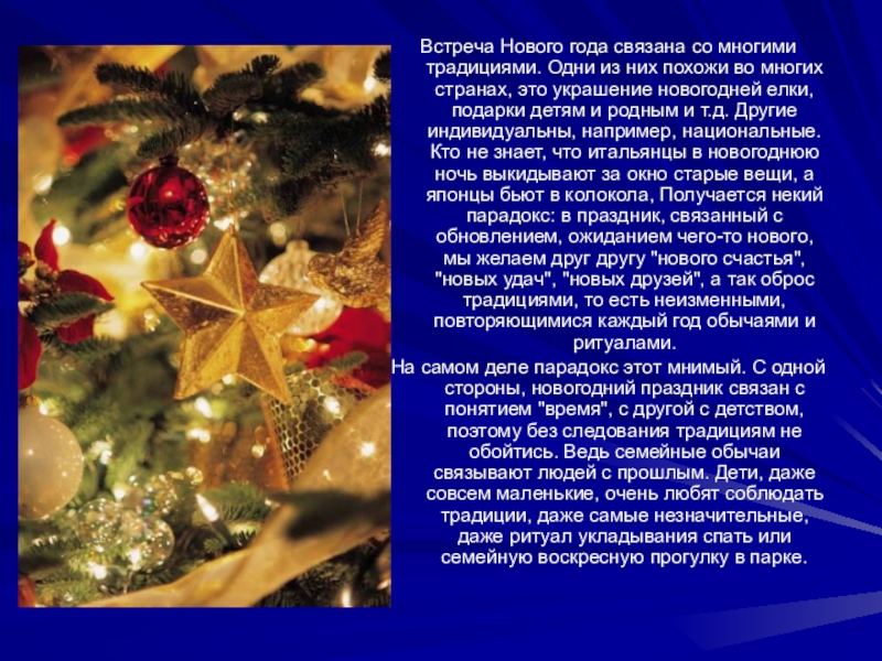 Слайд 5Встреча Нового года связана со многими традициями. Одни из них похожи