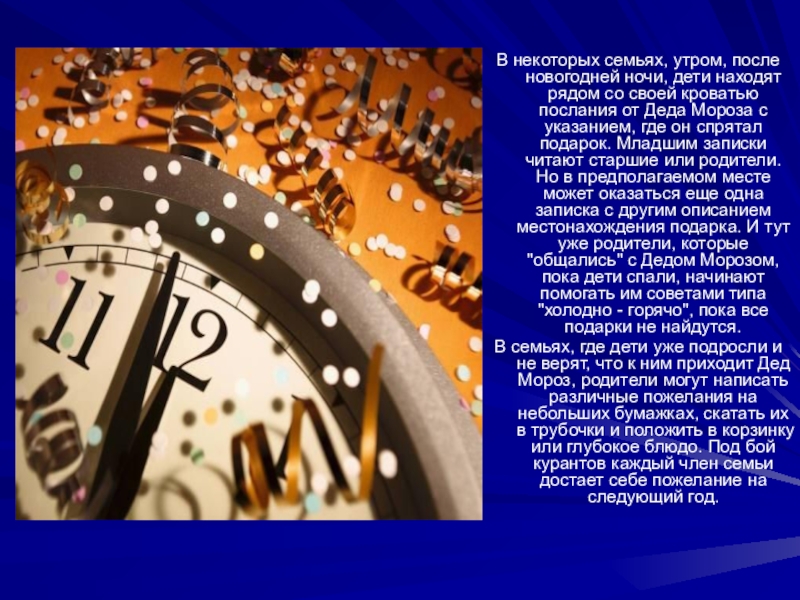Слайд 8В некоторых семьях, утром, после новогодней ночи, дети находят рядом со