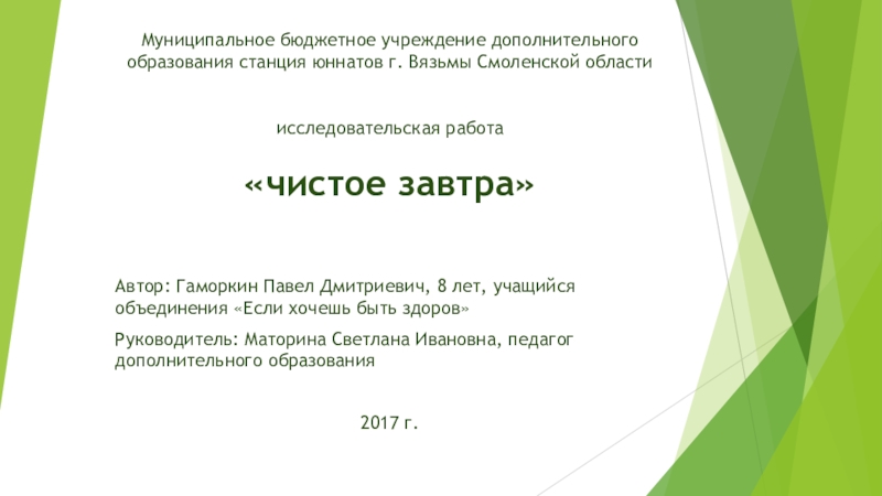 Автор: Гаморкин Павел Дмитриевич, 8 лет, учащийся объединения «Если хочешь быть здоров»