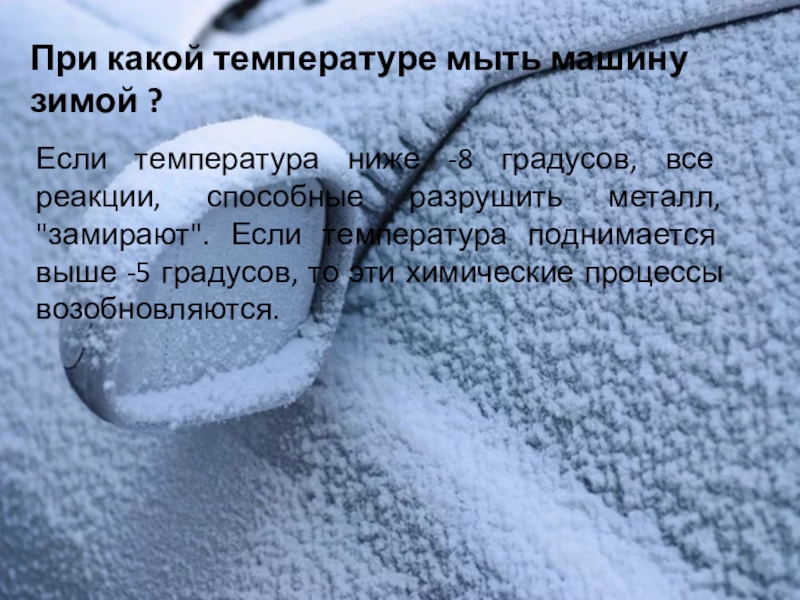 Реагенты (в том числе соль), конечно, вредны. Но когда та же соль оседает на машине, появляется налет, который играет роль защитной пленки от новых химикатов. Когда температура воздуха опускается ниже -5, мыть автомобиль не советуют.