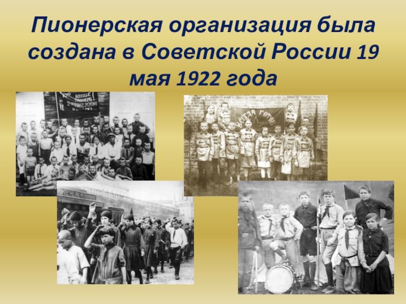 Слайд 3 Пионерская организация была создана в Советской России 19 мая 1922 года
