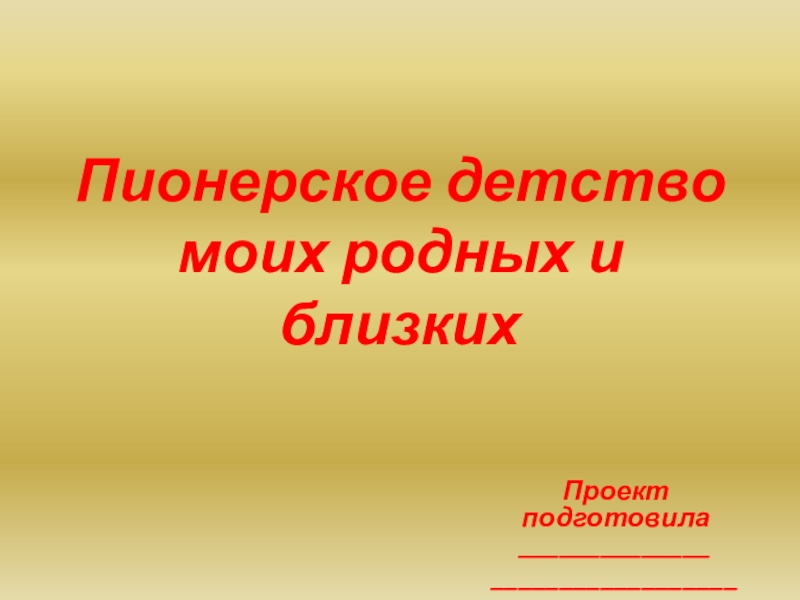 Пионерское детство моих родных и близкихПроект подготовила ________________________________