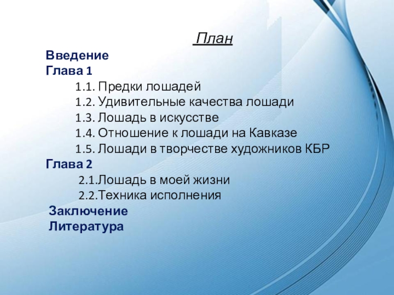 В результате исследования я выяснила, что мир лошадей очень разнообразен. Благодаря силе, выносливости, понятливости, резвости лошадь сыграла важную роль в развитии человеческой цивилизации.