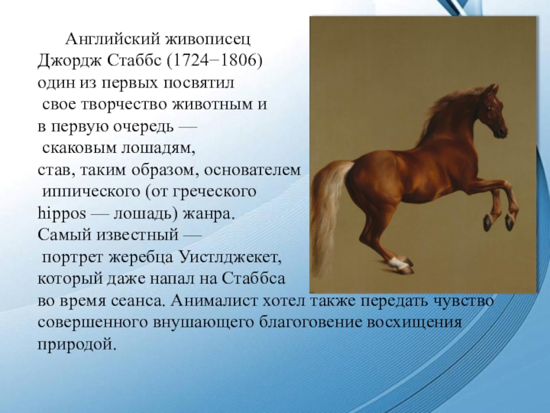 Слайд 22А в начале XIX века тема лошадей в искусстве продолжала развиваться.