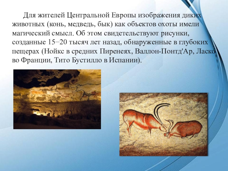 Слайд 16Для жителей Центральной Европы изображения диких животных (конь, медведь, бык) как