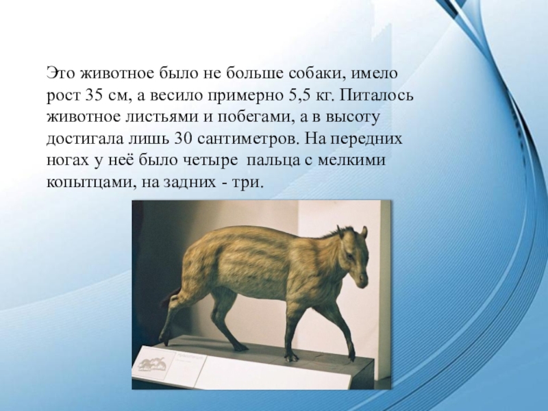Слайд 6Это животное было не больше собаки, имело рост 35 см, а