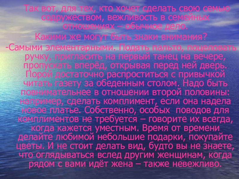 Слайд 5    Так вот, для тех, кто хочет сделать свою семью содружеством,