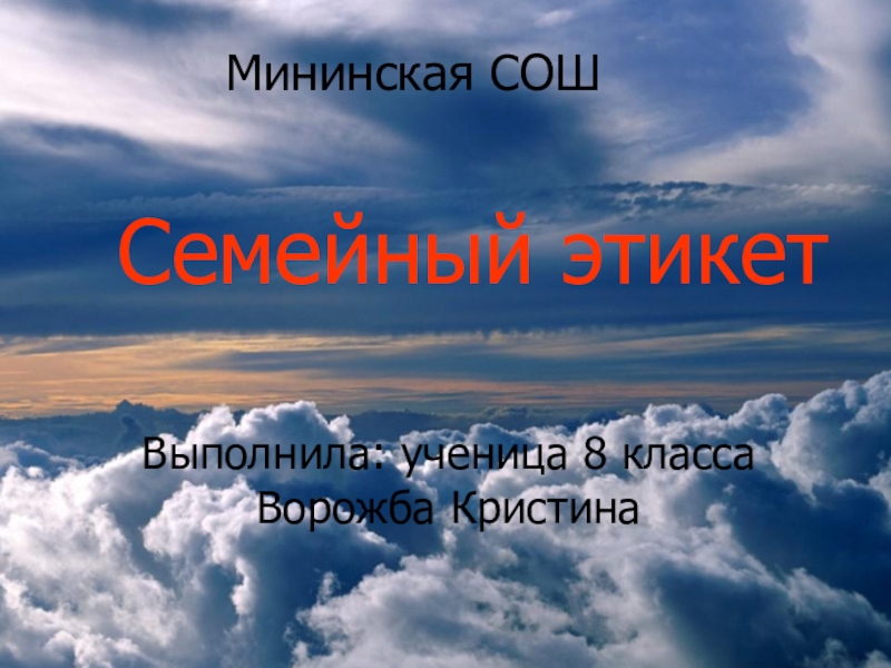 Мининская СОШ  Выполнила: ученица 8 класса Ворожба Кристина Семейный этикет