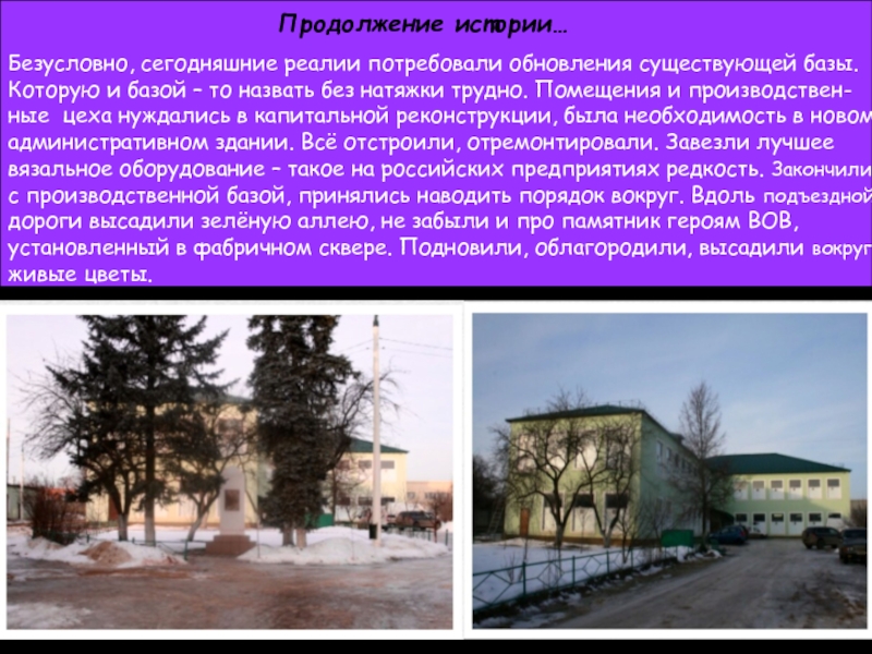 ные цеха нуждались в капитальной реконструкции, была необходимость в новом