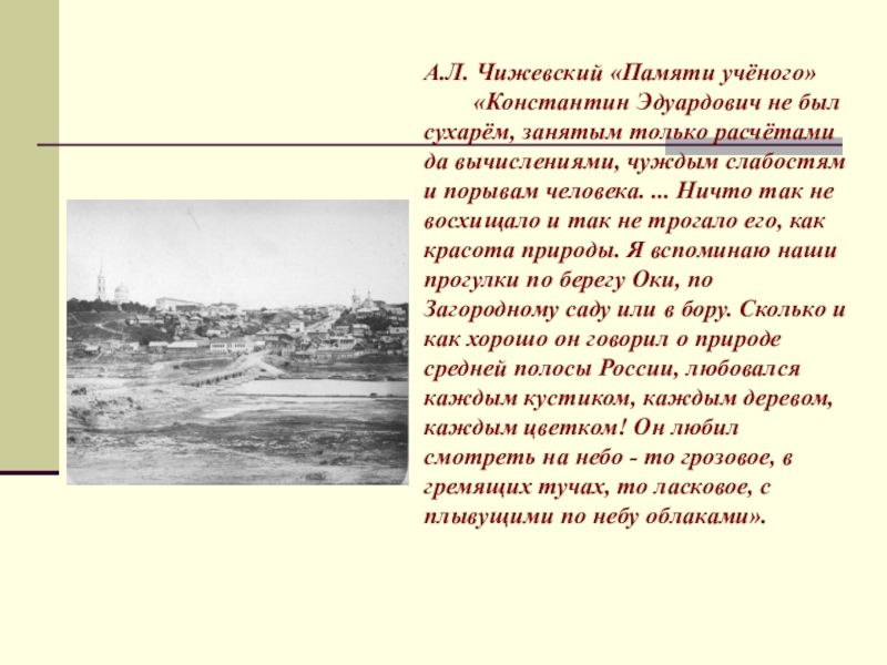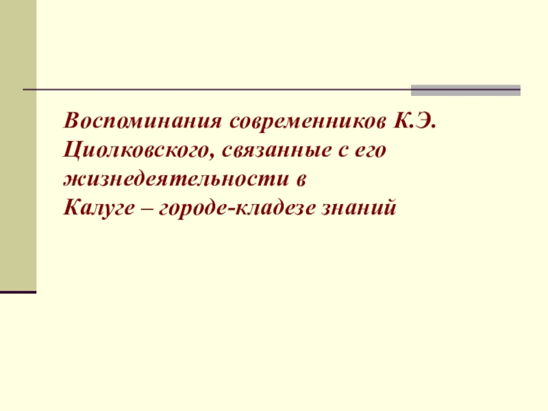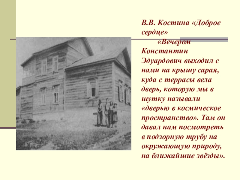 Слайд 6Воспоминания современников К.Э. Циолковского, связанные с его жизнедеятельности в