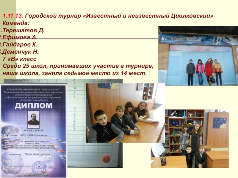 Слайд 111.11.13. Городской турнир «Известный и неизвестный Циолковский»