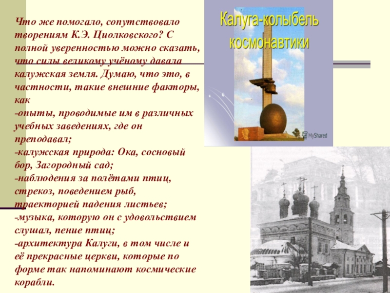 сказать, что силы великому учёному давала калужская земля. Думаю, что это, в частности, такие внешние факторы, как