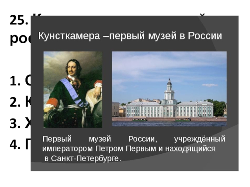 Слайд 2825. Как назывался первый российский музей?