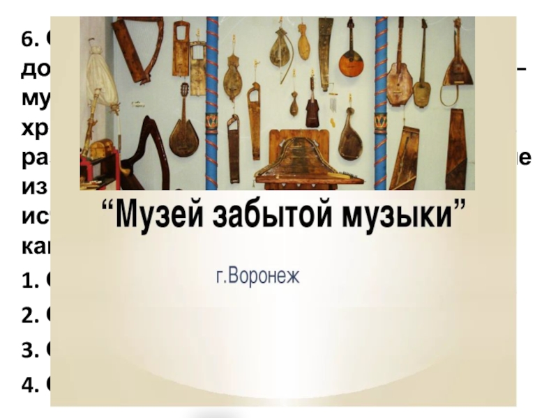 Слайд 96. Одна из уникальных достопримечательностей этого города — музей забытой музыки,