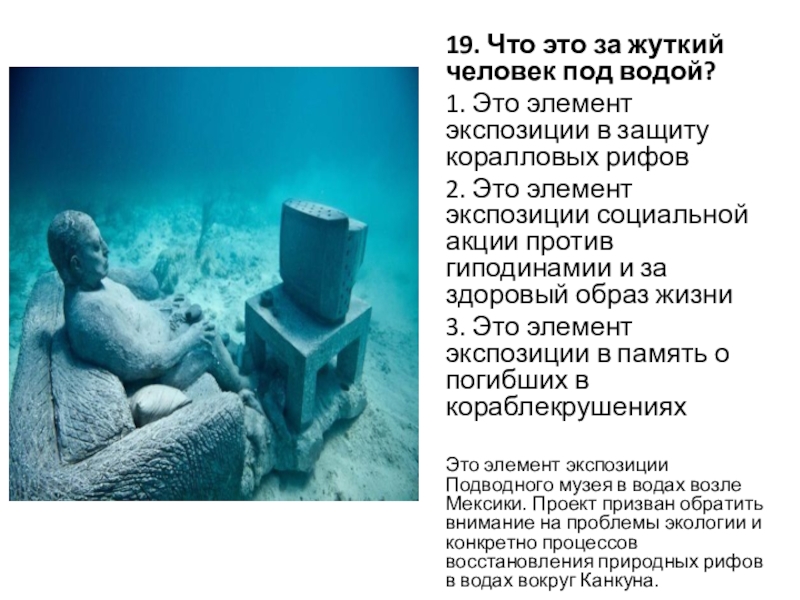 Слайд 2219. Что это за жуткий человек под водой?