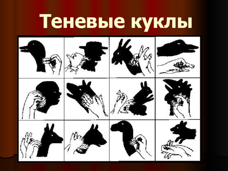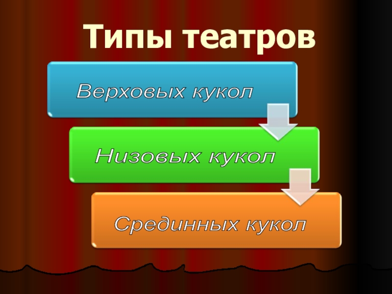 Типы театровВерховых кукол Низовых кукол Срединных кукол