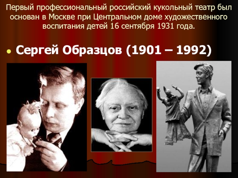 Слайд 9Первый профессиональный российский кукольный театр был основан в Москве при Центральном
