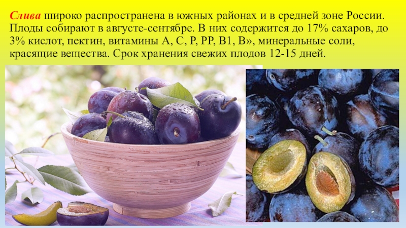 Слайд 16Слива широко распространена в южных районах и в средней зоне России.