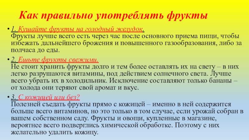 Слайд 22Как правильно употреблять фрукты