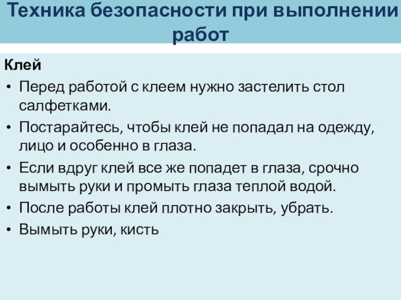 Слайд 10Техника безопасности при выполнении работ