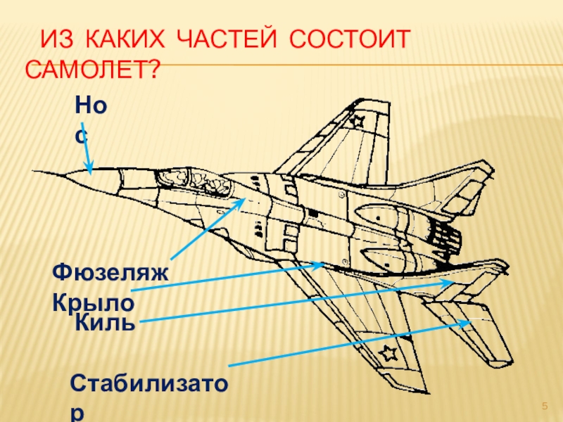 Из каких частей состоит самолет?  Фюзеляж КрылоКиль СтабилизаторНос