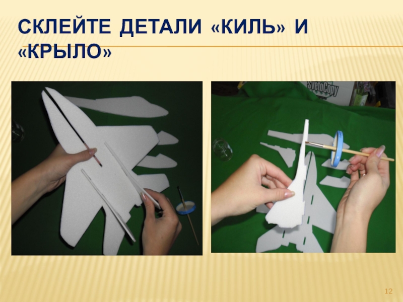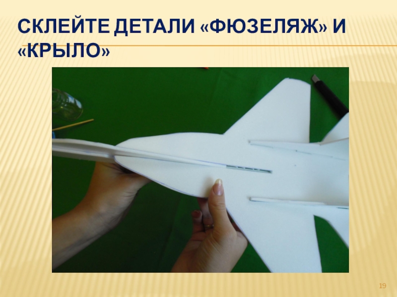 Слайд 19Склейте детали «фюзеляж» и «крыло»