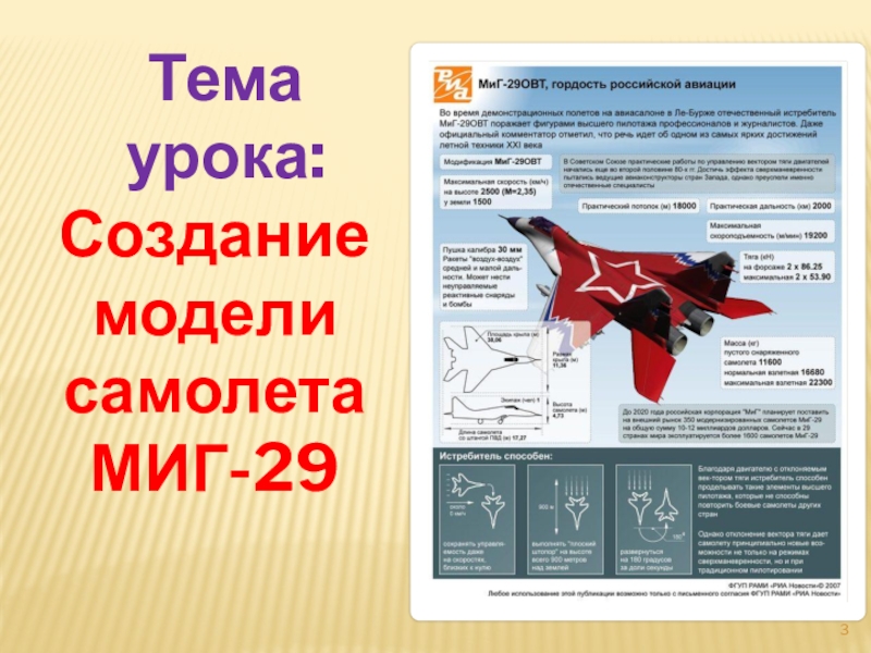 Слайд 1Летающий макет самолета МИГ-29 из депрона