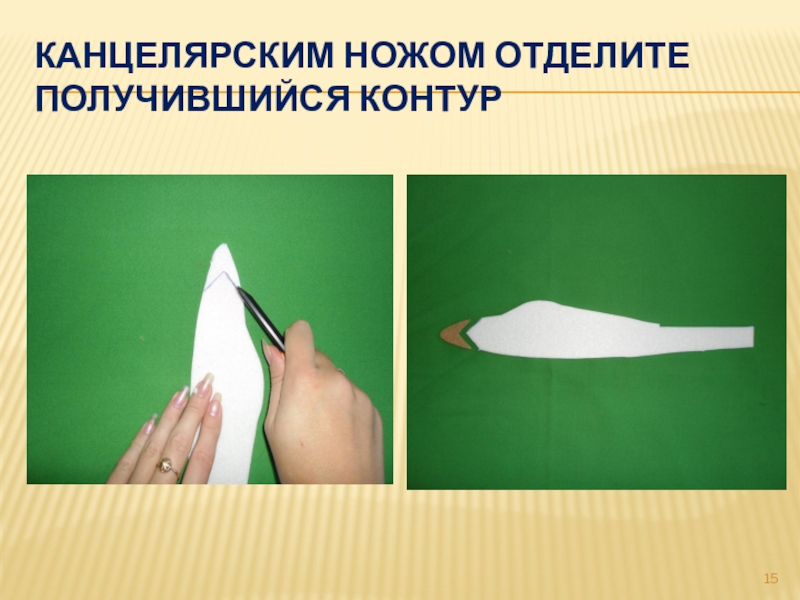 Слайд 15Канцелярским ножом отделите получившийся контур